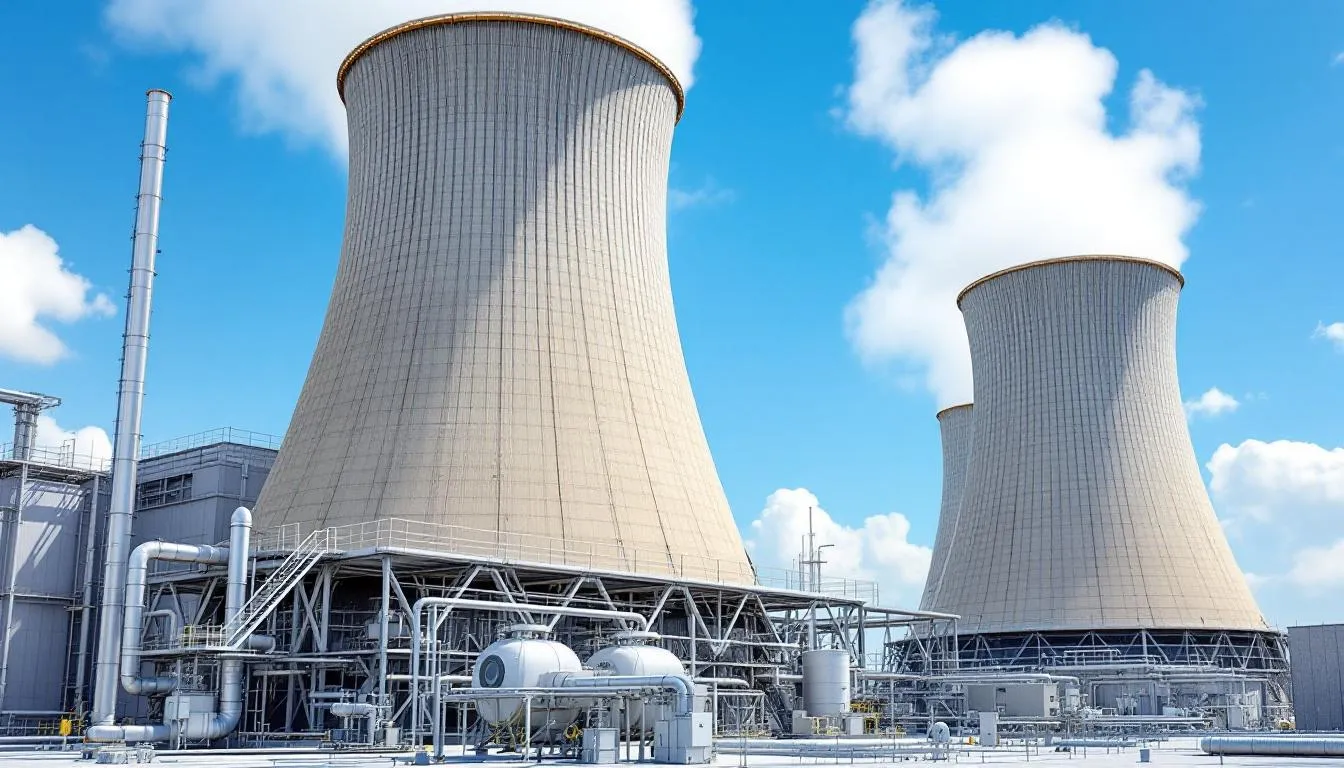 The image depicts a modern binary cycle geothermal power plant, featuring large cooling towers and advanced generating equipment designed to harness geothermal energy. This facility utilizes geothermal resources to generate electricity, contributing to renewable energy sources and reducing reliance on fossil fuels.